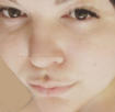 oberen Ende des Nasenrückens in die Hautfalte über dem